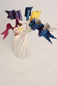These little flags make a big statement. They can easily be crafted from a mixture of new, vintage, and recycled fabrics. Use