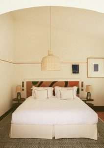 The Hotel Lou Pinet is giving off big 60’s vibes and we’re here for it! Drawn to the bold graphics, wicker, beautiful